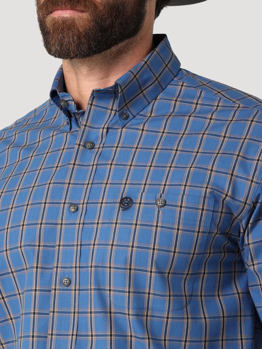 Wrangler Men's Long Sleeve Logo Shirt Blue / Tan Plaid 2318987
