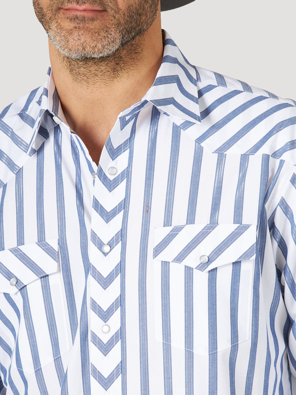 Wrangler Men's Silver Edition Long Sleeve Snap Shirt White Blue
