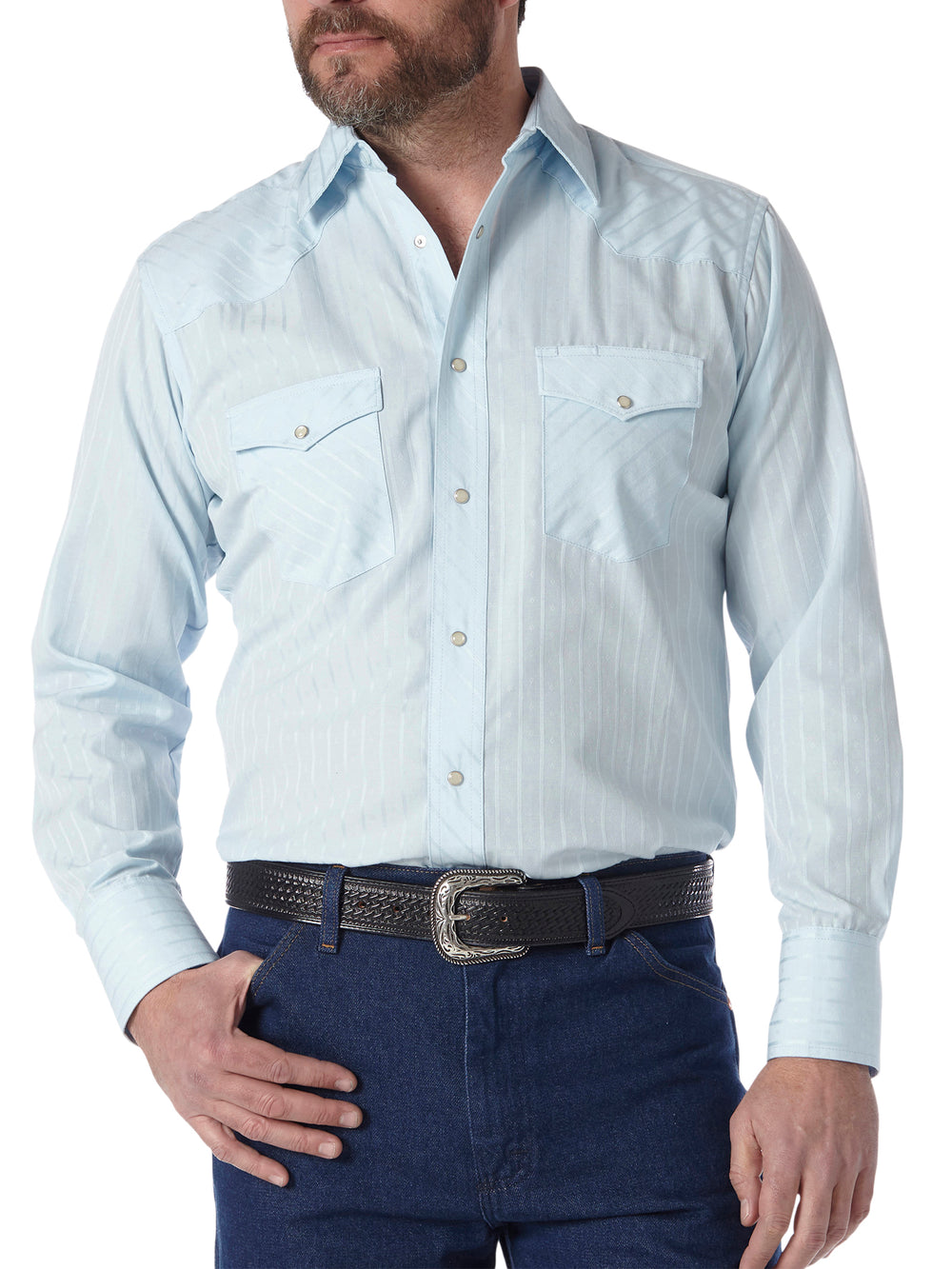 Wrangler Silver Edition Western Snap Long Sleeve Light Blue Shirt