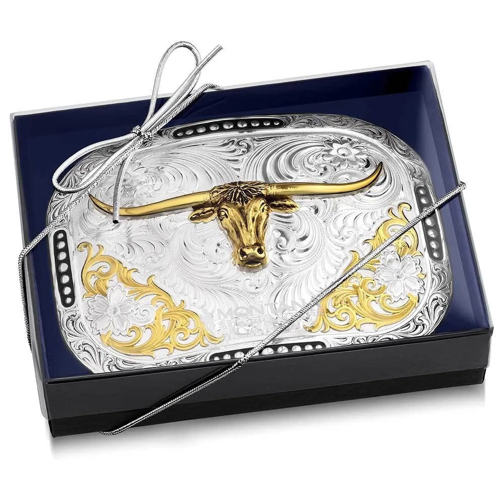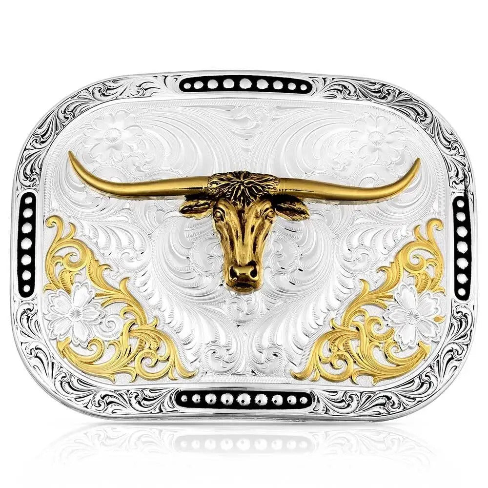 Montana Silversmiths Class Act Two Tone Belt Buckle with Longhorn