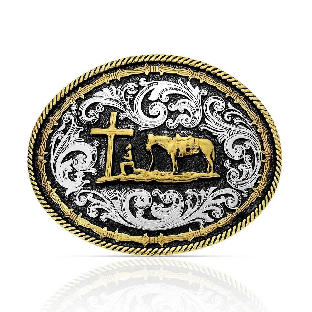 Montana Silversmiths Two tone Rope & Barbed Wire Classic Impressions Christian Cowboy Attitude Buckle