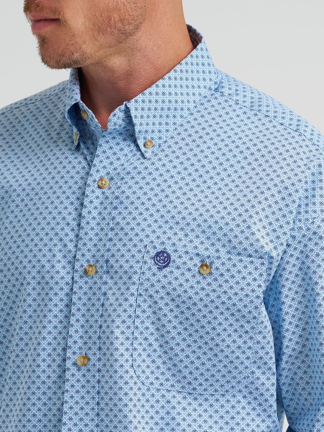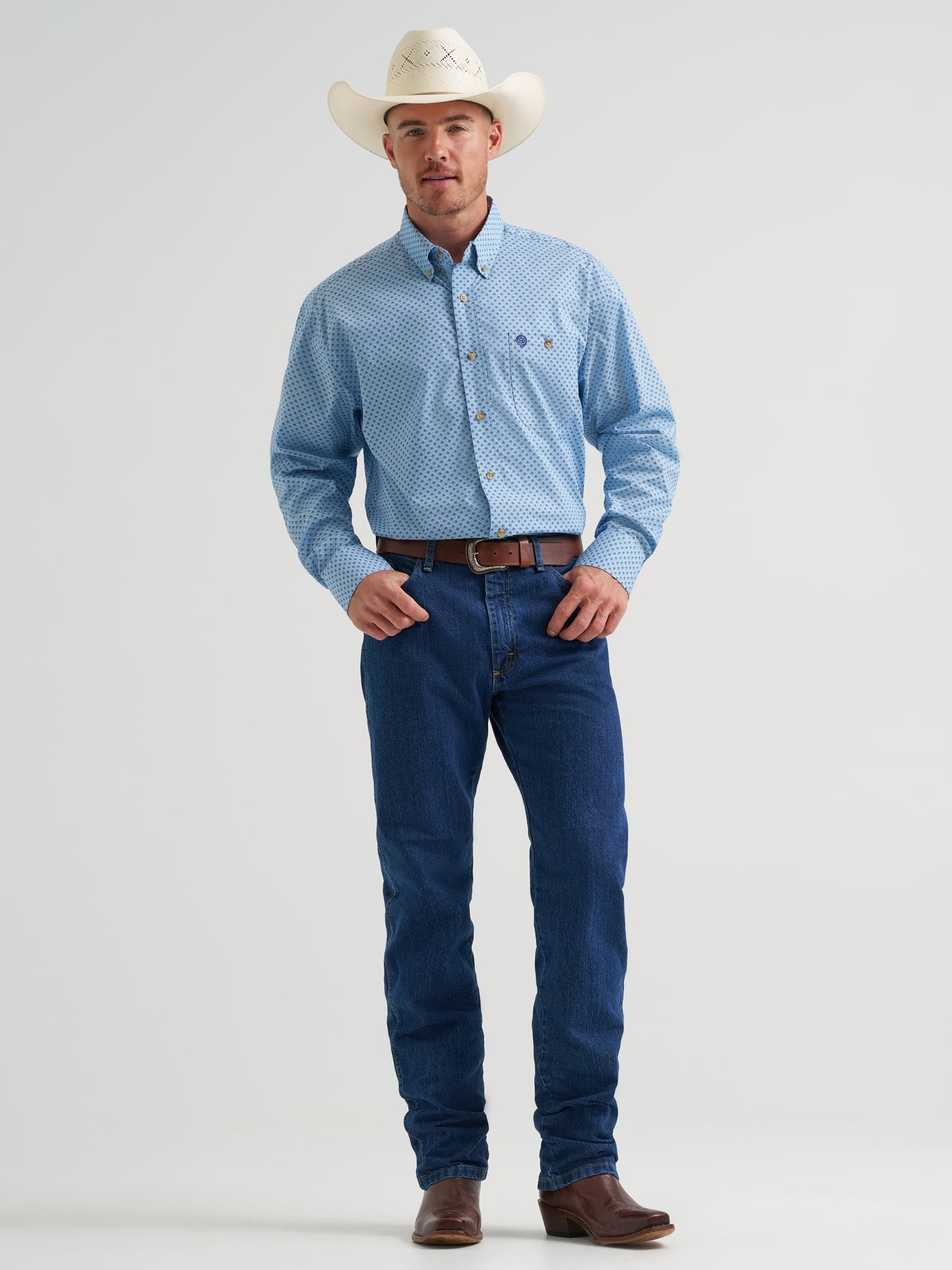 Take the spotlight in style wearing the George Strait™ One-Pocket Button-Down Shirt. This long-sleeve button-down features a straight back yoke, one chest pocket, and adjustable cuffs. With its relaxed fit, this classic collared shirt offers plenty of room through the shoulders and torso. Plus, it comes in a wide variety of colors and patterns.