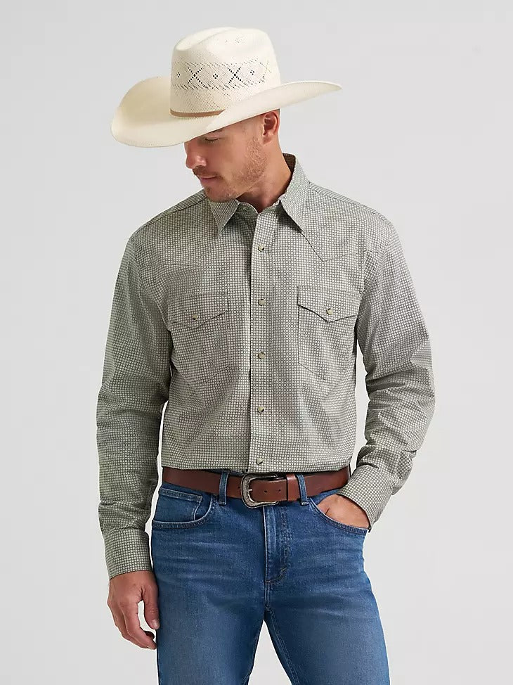 Wrangler Men's 20X Competition Long Sleeve Two Pocket Western Snap Shirt - Olive Minis
