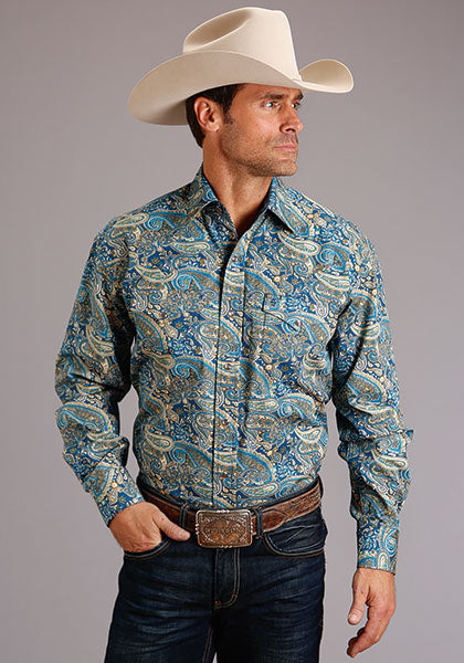Roper Men's Blue Vintage Paisley Print Long Sleeve Snap Shirt