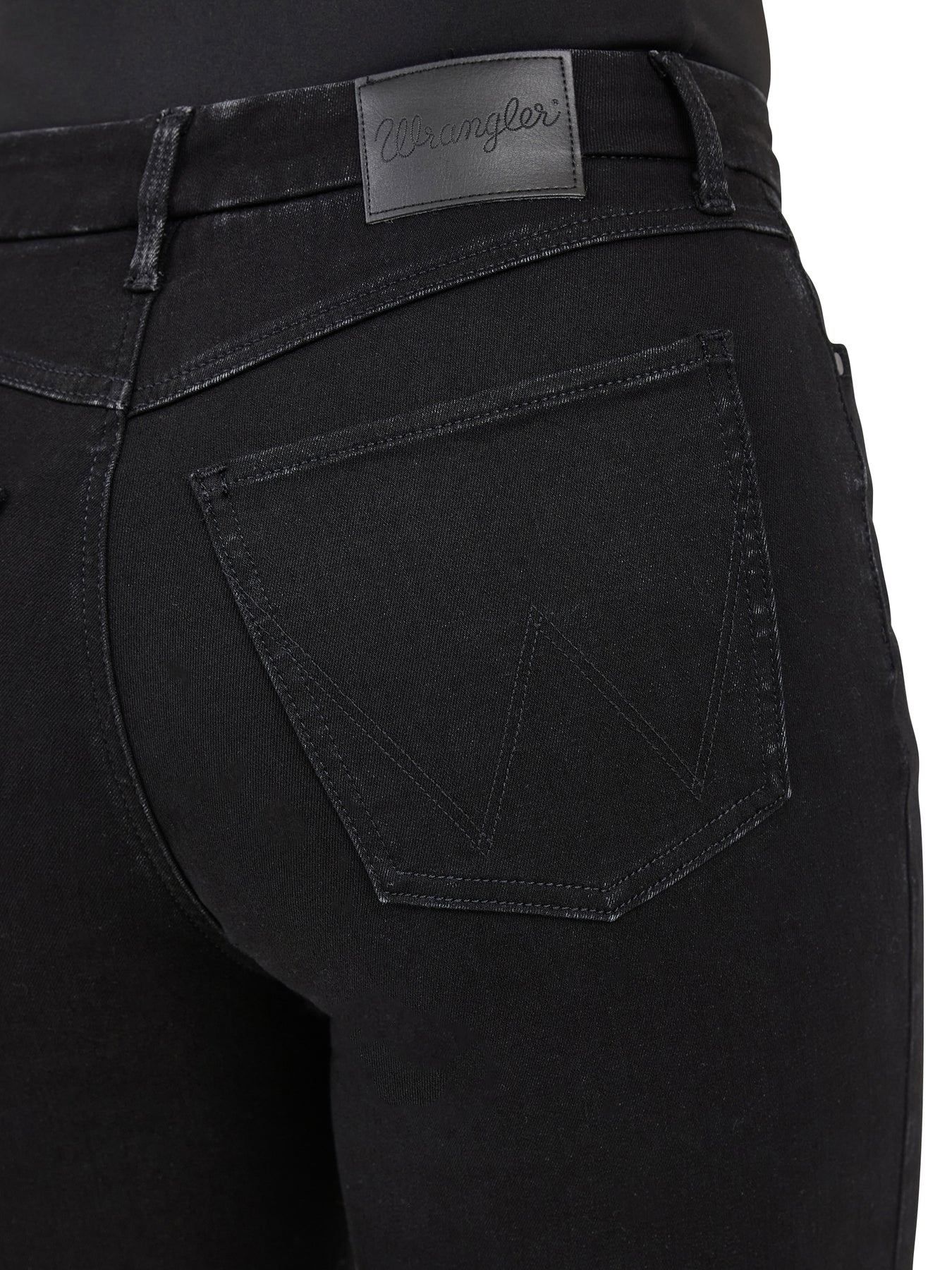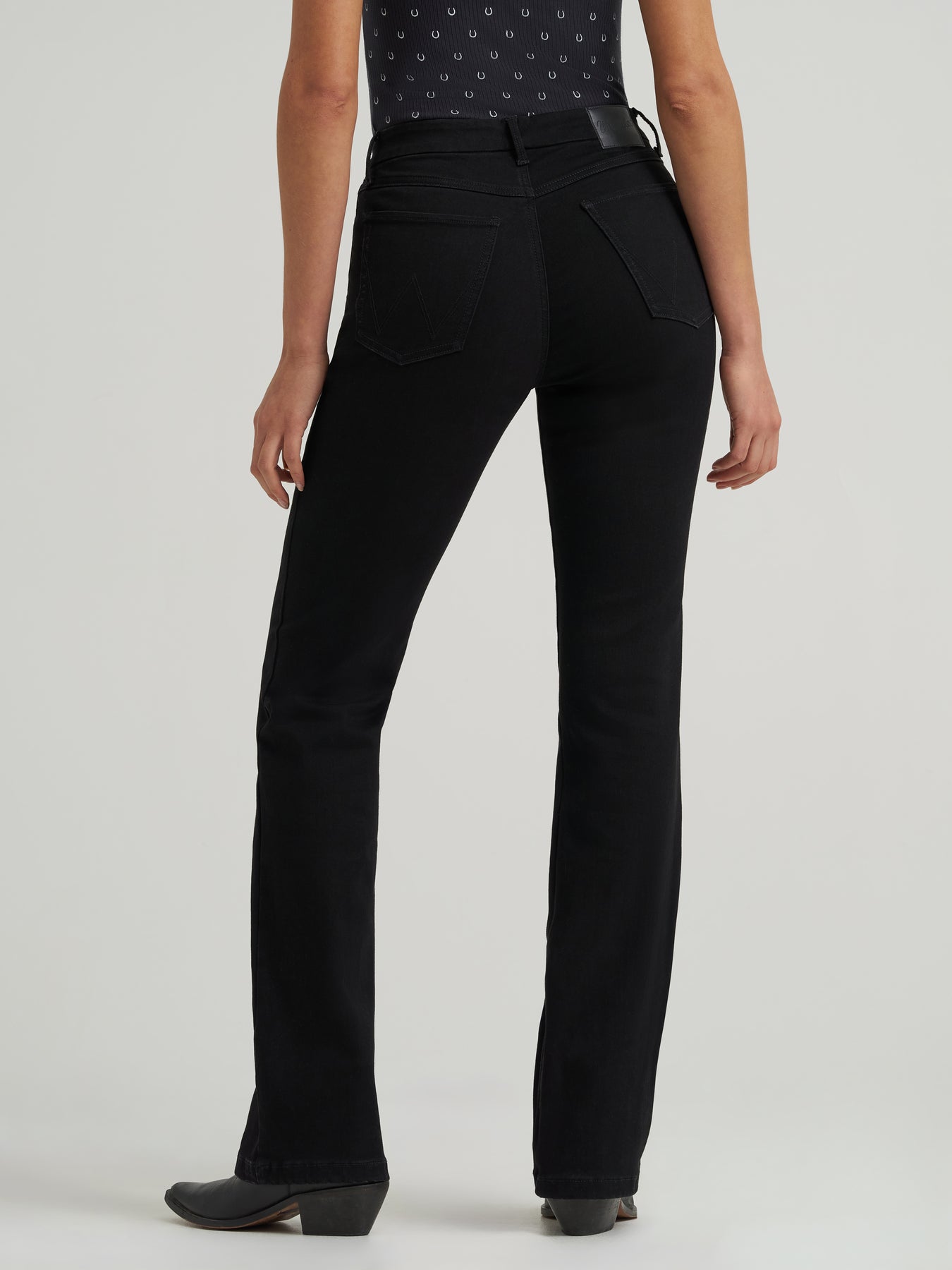 Few silhouettes are as celebrated as the Wrangler bootcut. These women's bootcut jeans feature a hip-hugging high rise that flatters your figure while providing the perfect amount of coverage to keep you comfortable through the day. Their contoured waistband allows the style to sit higher in the back for less gaping while the timeless bootcut jeans offer a versatile look you can dress up or down to suit every occasion. With a leg opening that fits comfortably over combat boots, winter booties, or heels, the jeans are a style staple you'll be wearing every day of the week.