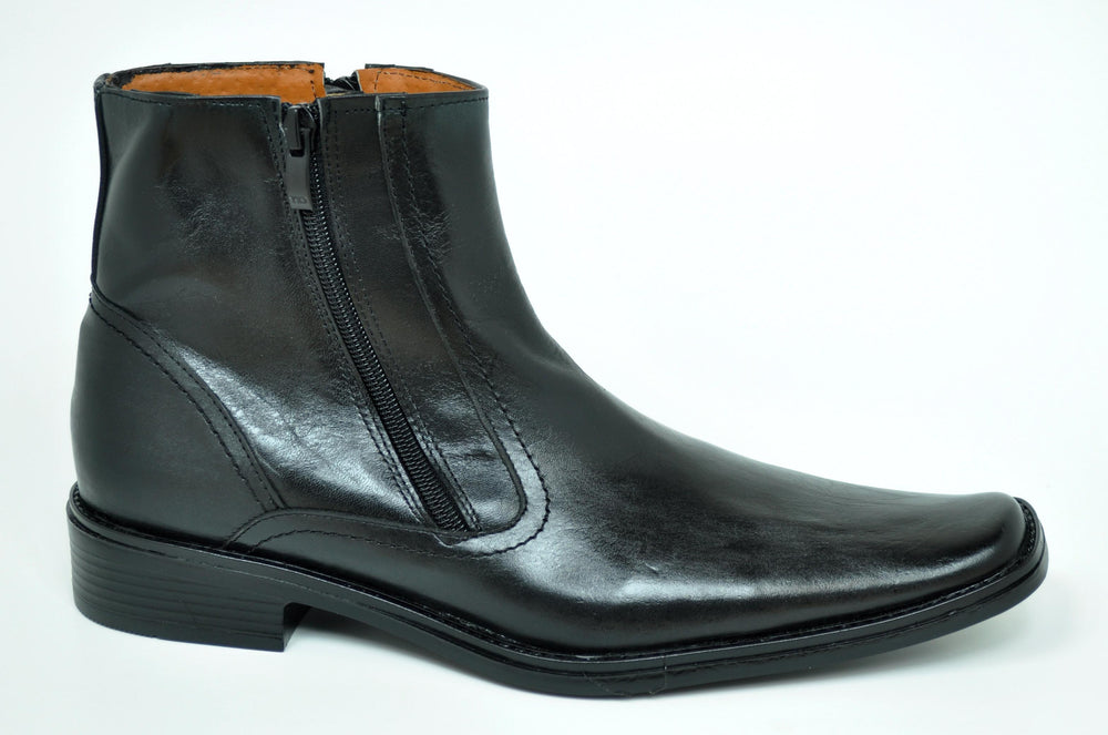 Noah Men's Dual Zipper Black Leather Dress Boots