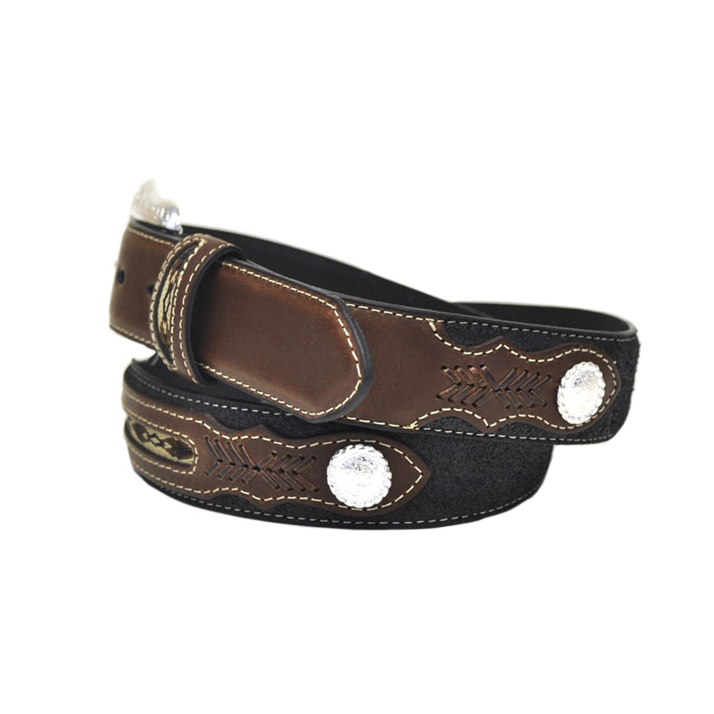 Enjoy comfort and durability from this Mens Nocona belt. This belt is black with dark brown on the ends. Beautiful southwestern style inlay in the middle.